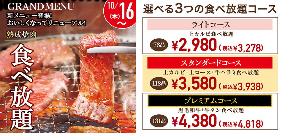 焼肉食べ放題コースは3つのコースをご用意しております!