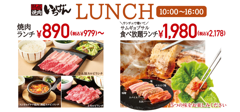 定番のカルビランチや、黒毛和牛ランチなど、各種取り揃えております。