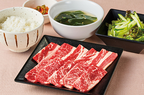 ・カルビ・やわらか牛ハラミ・サラダ・白菜キムチ